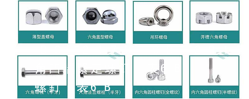不銹鋼螺絲產品主要有:外六角螺栓、圓柱頭內六角螺釘(杯頭)、內六角凹端緊定螺釘(凹端機米)、內六角平端緊定螺釘(平端機米)、內六角尖端緊定螺釘(尖端機米)、內六角柱端緊定螺釘(柱端機米)、沉頭內六角螺釘(平杯) ⑤螺柱類:雙頭螺栓、等長雙頭螺柱(A型B型)、特長雙頭(銅、鐵、鋁、不銹鋼)⑥、緊定螺釘類:內六角平端緊定螺絲、內六角尖端緊定螺絲、內六角凹端緊定螺絲、⑦、銷類:開口銷、圓柱銷、圓椎銷、彈性圓柱銷、銷軸、