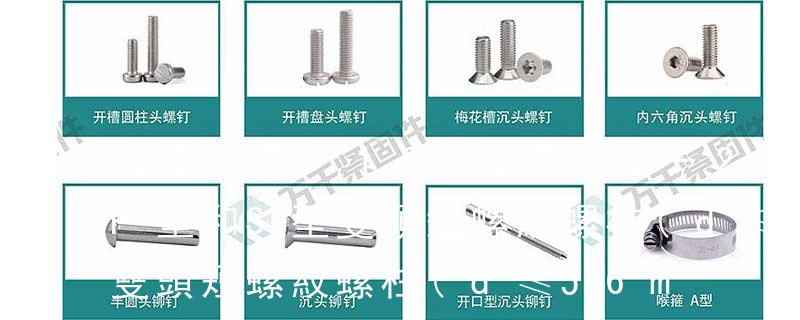 GB5779.1 緊固件表面缺陷螺栓,螺釘和螺柱一般要求 GB5779.3 緊固件表面缺陷螺栓,螺釘和螺柱特殊要求 GB90 緊固件驗收檢查,標志與包裝 GB1237 緊固件的標記方法 雙頭螺栓標準GB-T 898 雙頭螺栓標準規定了螺紋直徑為M2~M56, 36.GB/T13806.2-92 精密機械用緊固件 十字槽 自攻螺釘---刮削端 材料:滲碳鋼 37.DIN 6928-90 六角頭法蘭面自攻螺釘 材料:滲碳鋼廠不銹鋼 38.GB898-88 雙頭螺柱 bm=1.25d 材料:鋼 機械性能:4.8 6.8 8.8