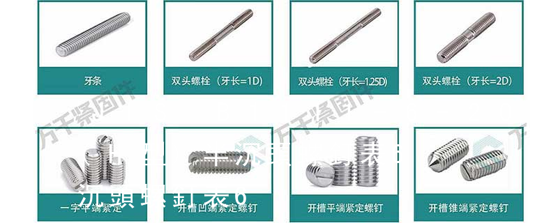 ③M5過孔尺寸為6,深0.8,杯頭尺寸為8.5。④M6過孔尺寸為7,深1,杯頭尺寸為10。⑤M8過孔尺寸為9,深1.25,杯頭尺寸為13。⑥M10過孔尺寸為11,深1.5,杯頭尺寸為16。 木螺釘有十字槽沉頭、十字槽半沉頭、十字槽圓頭、開槽(一字槽)沉頭、開槽半沉頭、開槽圓頭、六角頭等幾種,公稱直徑有1.6、2、2.5、3、3.5、4、5、6、7、8、10等系列,長度有6、8、10、12、16、20、25、