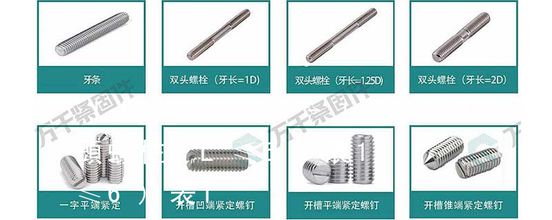 標準件螺絲規格種類1、螺栓(1)六角頭螺栓:規格d=M5~M36,L=8~300mm。(2)半圓頭方頸螺栓:規格d=M6~M16,L=30~160mm。(3)高強度大六角螺栓:規格d=M12~M24,L=35~240mm。2、螺柱雙頭螺柱和等長雙頭
